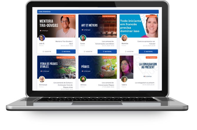 Lives Semanais com professores para tirar dúvidas e conhecer mais sobre a cultura francesa.