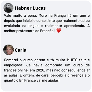 Com professores da minha equipe que são apaixonados por francês e estão 100% dedicados para tirar suas dúvidas no En France.